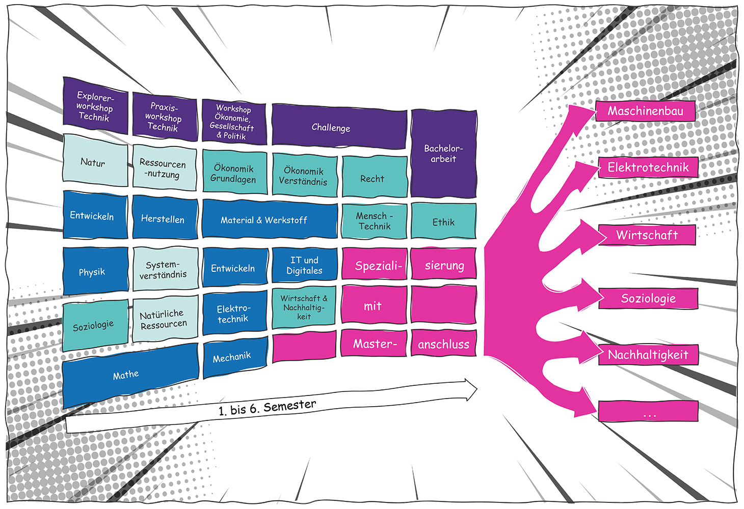 Im Studiengang Mensch - Umwelt- Technik (MUT) lernst du, die komplexen Problemlagen unserer Zeit zu verstehen. Du lernst, wie der Einsatz von Technik in Wirtschaft und Gesellschaft die Umwelt beeinflusst und verstehst die Wechselwirkungen. Und du lernst, wie man Strategien erarbeitet, und daraus innovative Lösungen für positive Veränderungen und für eine lebenswerte Zukunft entwickelt.